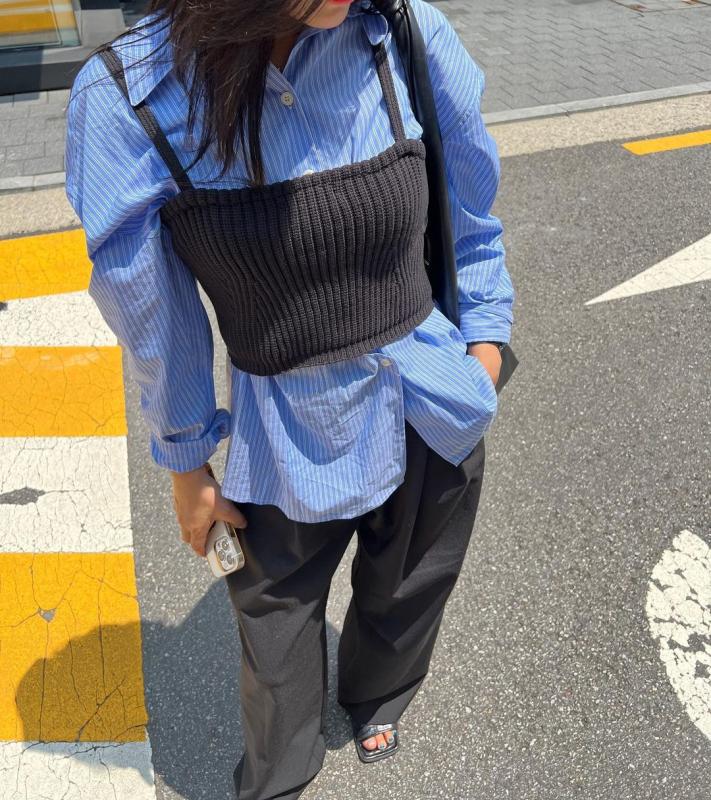 어깨리본 니트 나시 뷔스티에