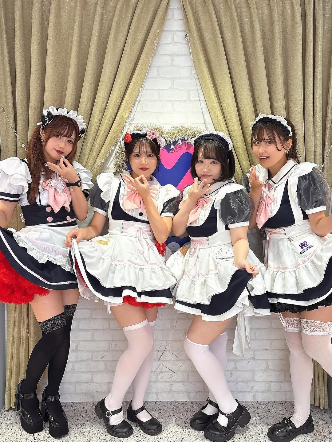 저는 왠지 모르게 오사카 일본교 오타로드점의 메이드분들이 입었던 특별한 유니폼이 눈에 들어왔어요. 🖤 블랙 컬러를 기본으로 하면서도 앙증맞은 프릴과 리본 디테일이 더해져서, 시크하면서도 사랑스러운 매력을 동시에 느낄 수 있었죠. 🎀